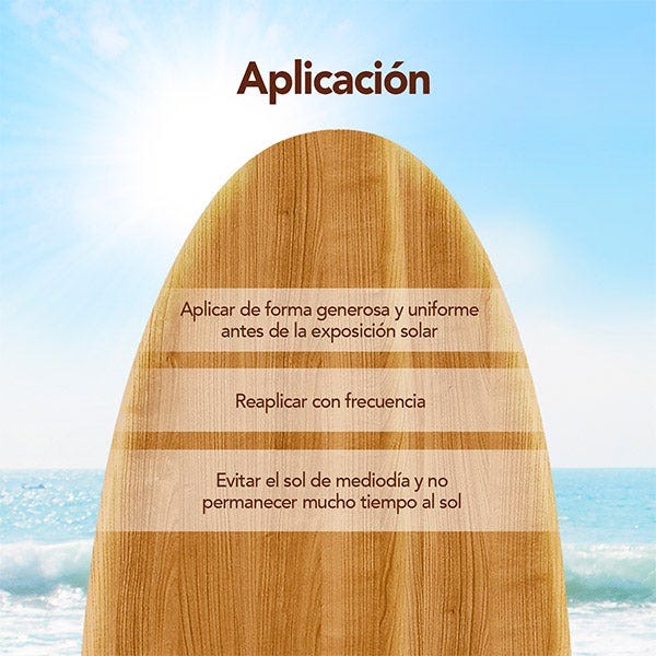 1. Aplicar de forma generosa y uniforme antes de la exposición solar.