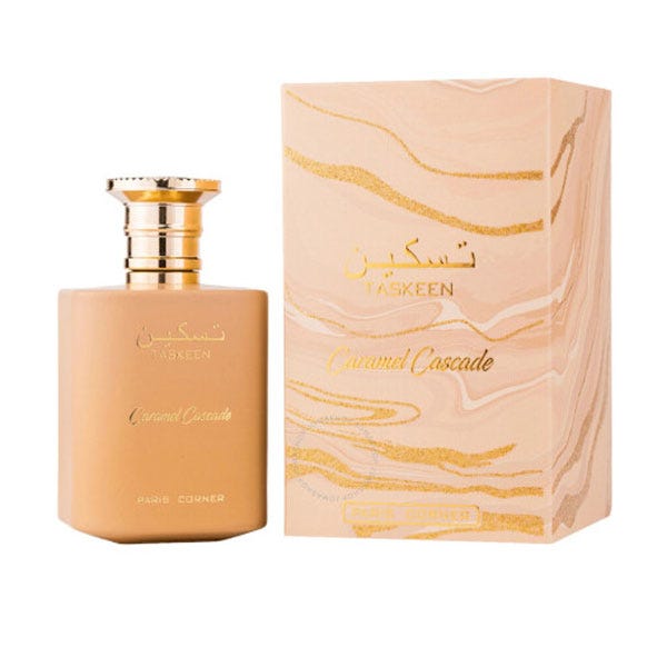 Taskeen Caramel Cascade se abre con notas dulces y seductoras de delicioso Caramelo combinadas con leche cremosa que eleva la sofisticación de la fragancia de caramelo. Las notas de corazón vienen con la nota oriental acaramelada del Haba Tonka. Mezclado con Miel, aporta una calidez equilibrada con su dulzor ambarino.