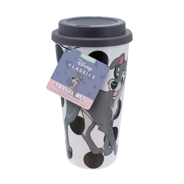 Este vaso de viaje reutilizable de plástico de Disney Animals tiene un hermoso acabado de lunares y está decorada con la Dama en la parte delantera.