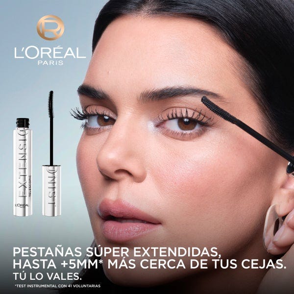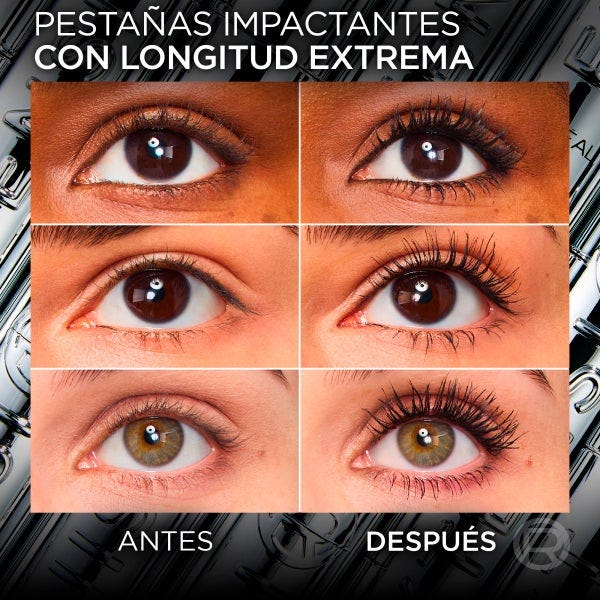 Eleva tus pestañas a una longitud similar a las extensiones con L'Oréal Paris Telescopic Waterproof Extensionist Máscara de pestañas.