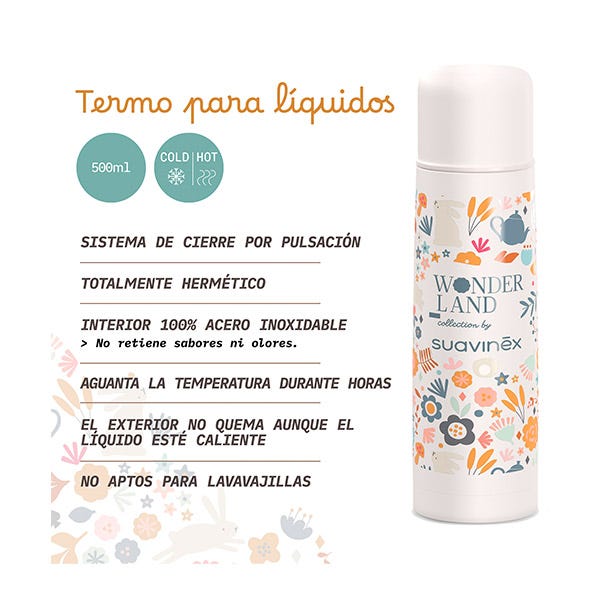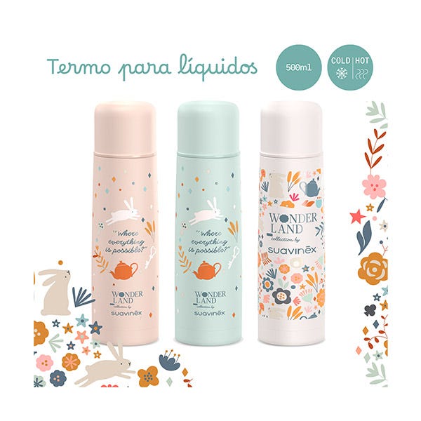 El termo para líquidos Suavinex de 500ml en color beige es ideal para transportar tanto bebidas calientes como frías, asegurando que se mantengan a la temperatura adecuada durante varias horas.