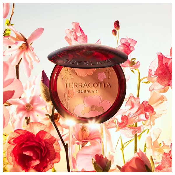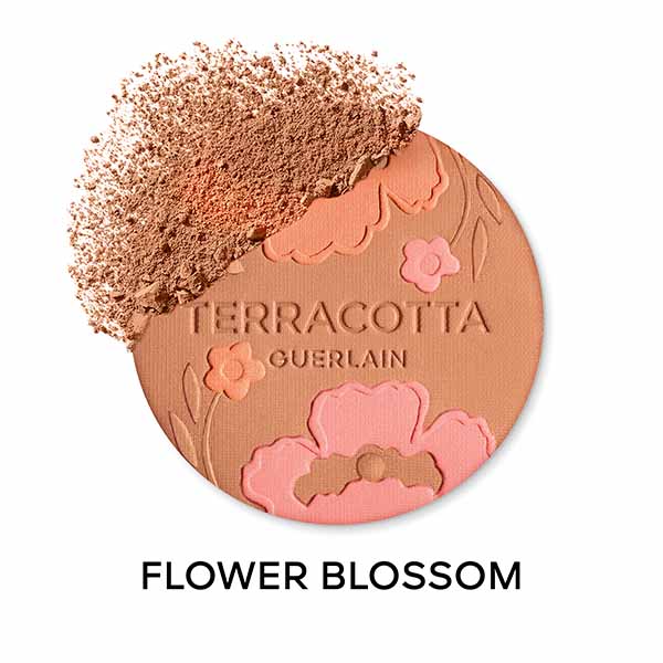 Terracotta Flower Blossom, adornado con un delicado motivo floral, ofrece una piel radiante y delicadamente ruborizada para un efecto buena cara, fresco y naturalmente bronceado.