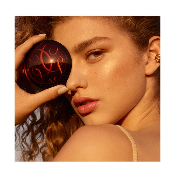 Aplicar con pequeños toques en la parte superior de los pómulos, el puente de la nariz y el arco de Cupido para conseguir un maquillaje sensual, resplandeciente y radiante.