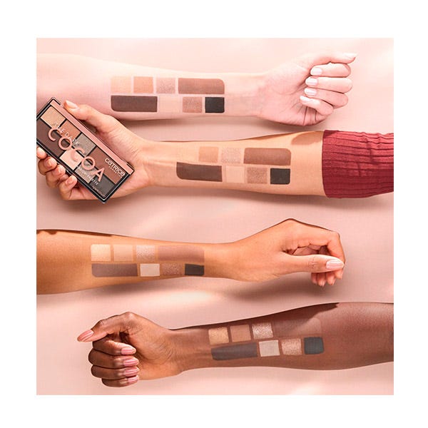Aporta un poco de chocolate a tus ojos con la paleta de sombras de ojos The Dark Cocoa de Catrice. La paleta tiene ocho tonos altamente pigmentados y combinados, incluyendo cálidos tonos chocolate, marrones mates y con shimmer, así como tonos nude claros. Gracias a su textura aterciopelada, las sombras de ojos son fáciles de aplicar y de difuminar, lo que te permite crear looks de maquillaje suaves pero expresivos.