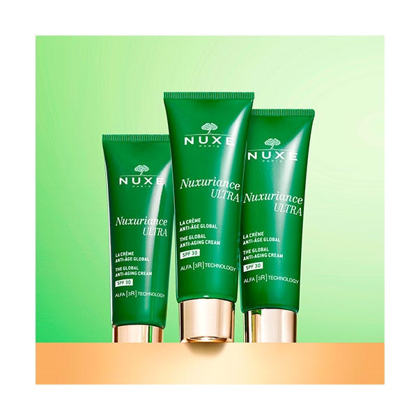 Finalizar con ligeros toques (con la yema de los dedos) en todo el rostro para despertar la luminosidad de la tez. Por la mañana, idealmente después del sérum Nuxuriance Ultra.