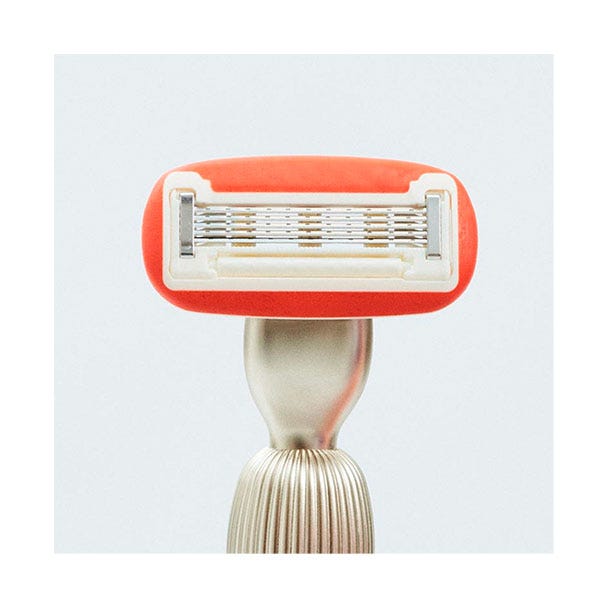 Humedece el cabezal de la cuchilla de afeitar en agua para activar el anillo lubricante y pásalo sobre el área interesada para proceder a la depilación.