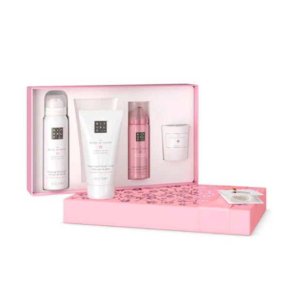 Contiene espuma de ducha, velas aromáticas, crema corporal y la nueva crema corporal mousse.