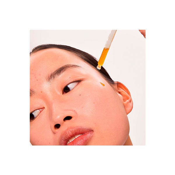 - Mezclar de 1 a 12 gotas de producto solo o con el tratamiento hidratante, sérum o aceite en la palma de la mano, y aplicar la mezcla en el rostro de manera uniforme.