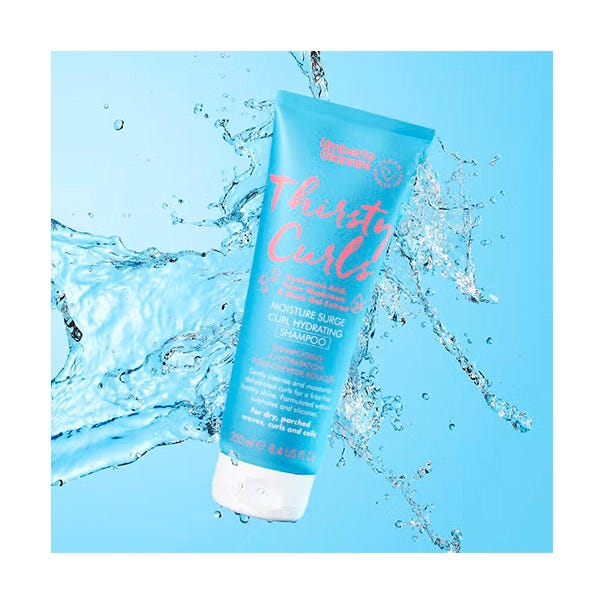 Aplicar sobre el cabello húmedo Masajear el cuero cabelludo y aclarar. A continuación, aplicar el acondicionador hidratante para rizos Thirsty Curls Moisture Surge. Completar el tratamiento con la mascarilla de tratamiento y la loción de peinado. Consejo profesional: La fórmula de Thirsty Curls prepara la porosidad del cabello para una máxima absorción.