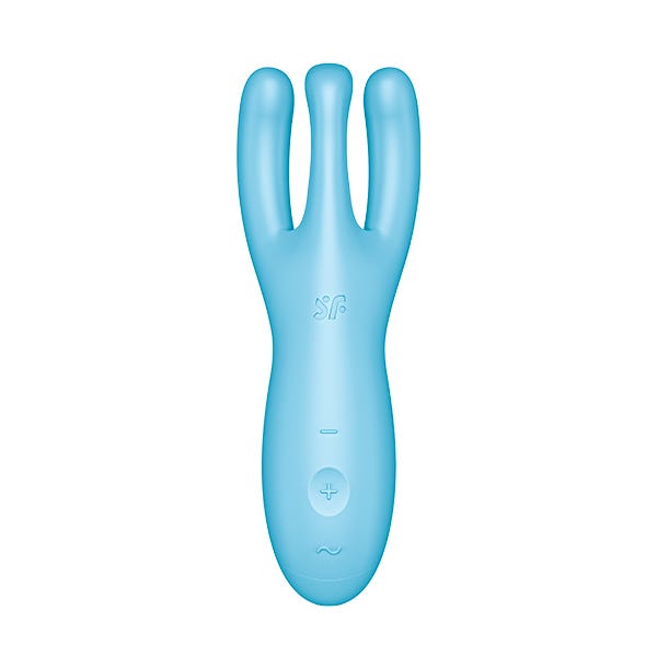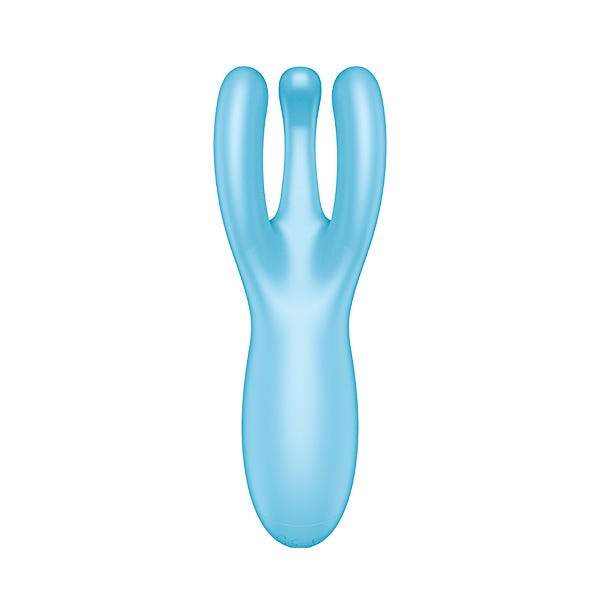 El vibrador de colocación Threesome 3 proporciona una estimulación sensual del clítoris y los labios vaginales en una amplia zona: con sus 3 brazos redondeados, cada uno de los cuales alberga un potente motor, tiene una forma ergonómica. Los dos brazos exteriores miman los labios mientras que el brazo central descansa centrado sobre el clítoris y se puede empujar hacia abajo para intensificar la estimulación.