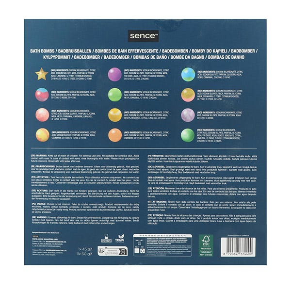 Dentro del set de regalo Sence Warm Wishes Bath Bomb, encontrarás doce alegres bombas de baño con colores explosivos y aromas cálidos para disfrutar.