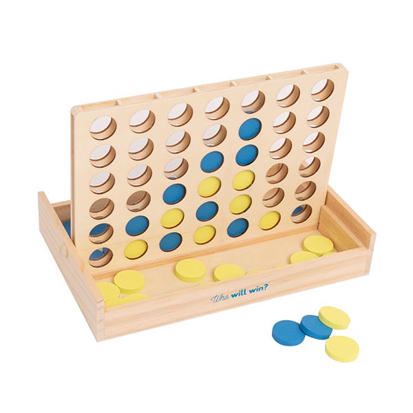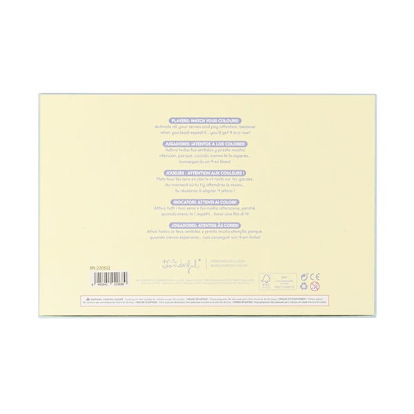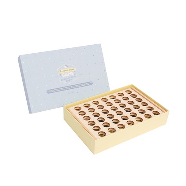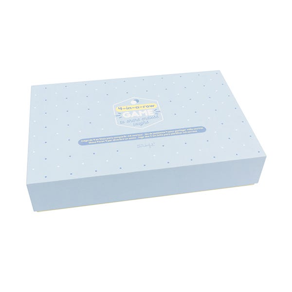 Tradicional juego de 4 en raya, con diseño adaptado al estilo Mr. Wonderful. Su packaging de cartón resulta muy premium, por lo que es perfecto para regalar. El tablero está realizado en madera y en su interior se pueden guardar las fichas, que también están realizadas en madera (21 fichas para cada jugador, de dos colores distintos).
