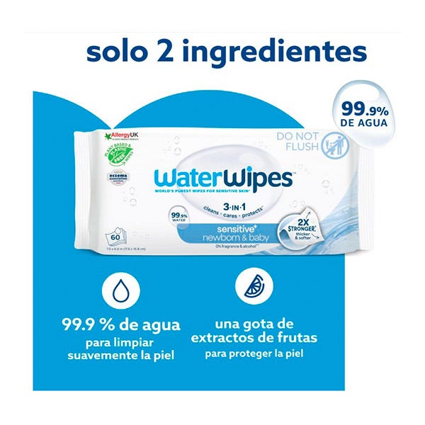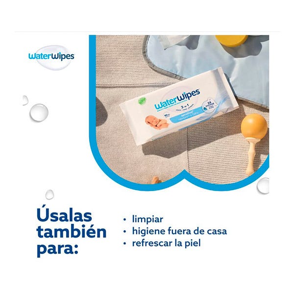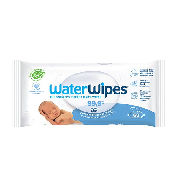 Waterwipes Toallitas bebé limpian, hidratan y protegen la piel de los bebés, son ideales para la piel de los bebés. Son naturales, a base de agua y extracto de semillas de pomelo, cuidan la piel de los niños, evitando irritaciones y molestias.