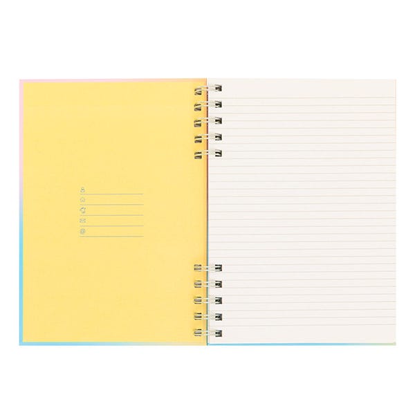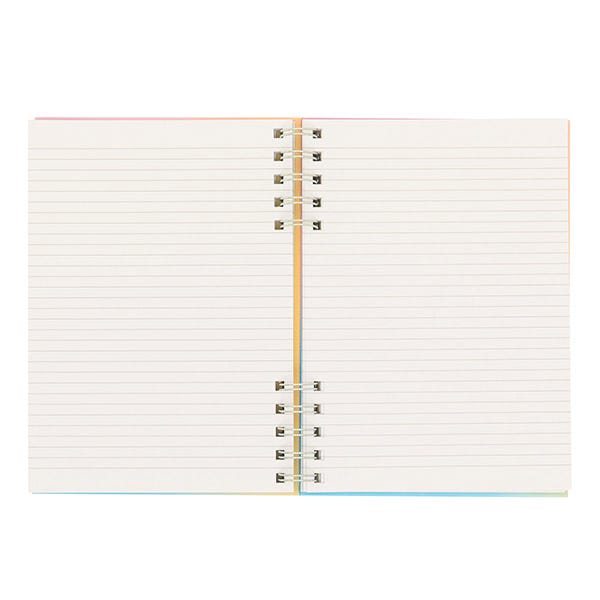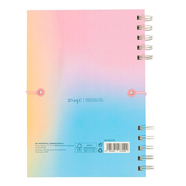 - Libreta rosa tamaño A5 con encuadernación en espiral. Esta espiral está dividida en dos partes, lo que le aporta originalidad.