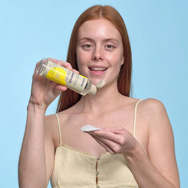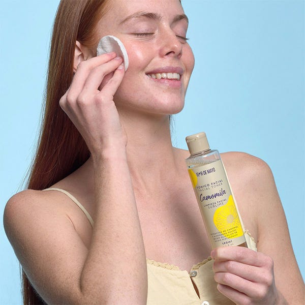 Empapa un disco de algodón, o directamente con las manos, y aplica a suaves toquecitos sobre el rostro, cuello y escote.