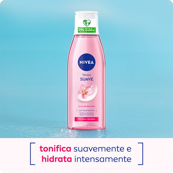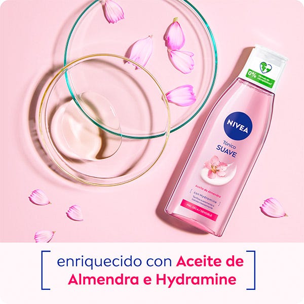 NIVEA Tónico Facial Suave está enriquecido con Aceite de Almendra y Hydramine, conocido por retener eficazmente la hidratación en la piel. Desarrollado especialmente para pieles secas y sensibles, no sólo tonifica, eliminando los últimos residuos del rostro, sino que también hidrata intensamente, suaviza y cuida de tu piel. ¿El resultado? La piel de tu rostro es suavemente tonificada y cuidada, consiguiendo un aspecto sano, y queda lista para continuar con el resto de la rutina de cuidado facial. Compatibilidad con la piel dermatológicamente comprobada.