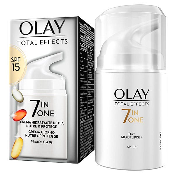 La crema hidratante 7 en 1 Total Effects es tu aliada para una piel más joven (reduce las arrugas y actúa sobre los 7 puntos del envejecimiento), nutrida y ligera, sin esa sensación pastosa que impide que la piel respire naturalmente.