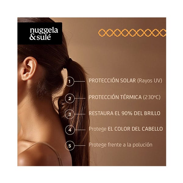 El Protector Capilar Total de Nuggela & Sulé evita la destrucción de proteínas del cabello, aumenta la retención de agua y previene la foto-oxidación, manteniendo un cabello vital y brillante, ya sea verano o invierno.
