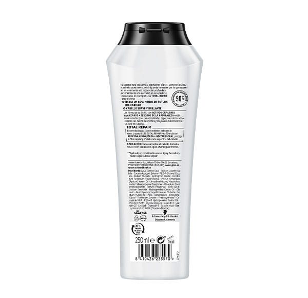 Keratina hidrolizada y néctar floral: Para el cabello seco y dañado, la gama de reparación total con queratina hidrolizada y néctar floral protege las fibras y embellece la superficie del cabello.