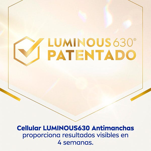 Con Luminous630 patentado que equilibra la pigmentación a nivel celular para reducir manchas oscuras y prevenir su reaparición + Booster de Colágeno.