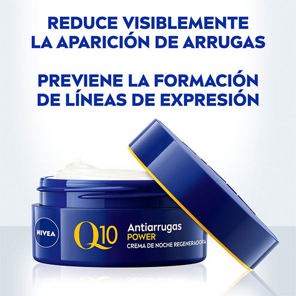 NIVEA Q10 Power Crema de Noche: Aqua, Glycerin, Cetearyl Alcohol, Caprylic/Capric Triglyceride, Butyrospermum Parkii Butter, Cocoglycerides, Methylpropanediol, Hydrogenated Coco-Glycerides, Glyceryl Stearate Citrate, Cetearyl Isononanoate, Triisostearin, Squalane, Macadamia Integrifolia Seed Oil, Ubiquinone, Panthenol, Creatine, 1-Methylhydantoin-2-Imide, Pantolactone, Glyceryl Stearate, Xanthan Gum, Ethylhexylglycerin, Caprylyl Glycol, Sodium Hydroxide, Citric Acid, Phenoxyethanol, Parfum.