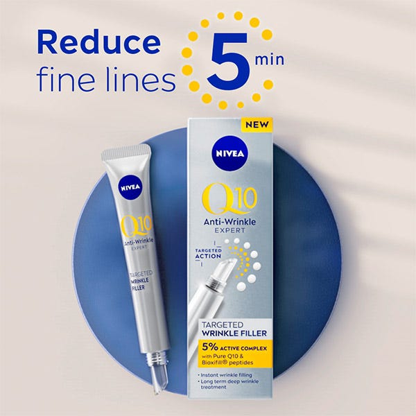 NIVEA Q10 Expert Sérum Rellenador: Aplica el sérum para rellenar las arrugas y líneas de expresión de la frente, alrededor de los ojos y el pliegue nasolabial con el aplicador de silicona, y extiende el sérum uniformemente con las yemas de los dedos. Evita el contacto directo con los ojos.