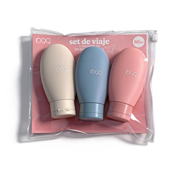 Organiza tu neceser con este práctico set de viaje compuesto por 3 botellas rellenables de 60 ml. Ideales para llevar champú, gel o crema en tus desplazamientos. Son ligeras, reutilizables y fáciles de rellenar. Perfectas para cumplir con las normativas de equipaje de mano y mantener tus productos bien ordenados.