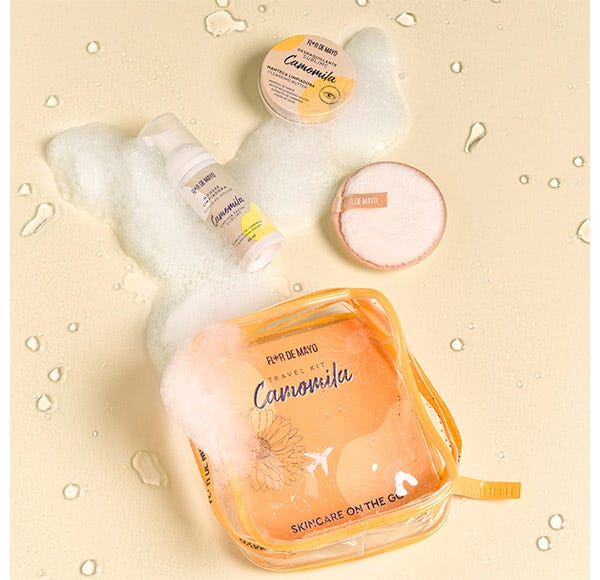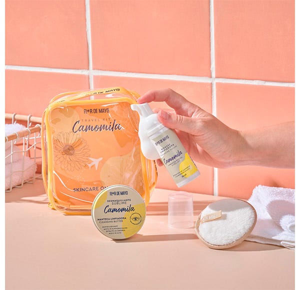 El nuevo Travel Kit Camomila contiene tus esenciales para la doble limpieza en una práctica presentación viajera, que puedes poner en tu bolso o maleta cuando vayas a la playa o a un festival de música. No dejes de realizar tu rutina de skincare en verano con estas mini tallas de nuestro Bálsamo Desmaquillante y Mousse Limpiadora de Camomila + un Disco Desmaquillante. ¡Todos tus productos WOW en un solo lugar!