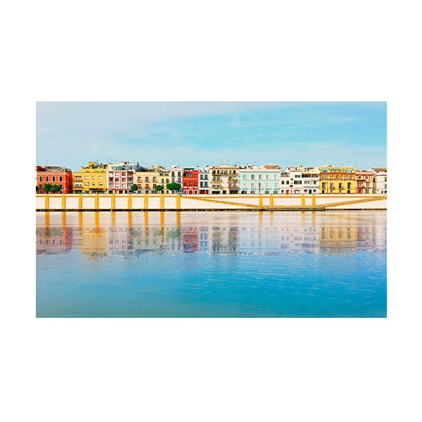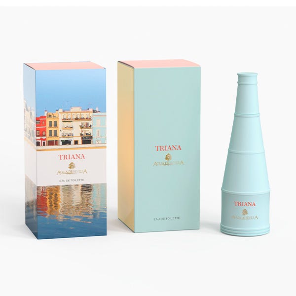 El packaging del perfume se inspira en las alegres fachadas de colores de la calle Betis, que recorren el cauce del río Gualdalquivir, convirtiéndola en una de las más emblemáticas y fotografiadas de Sevilla. La imagen de estas pintorescas fachadas envuelve la caja del perfume. Cada parte de la caja representa un color característico de estas casas.