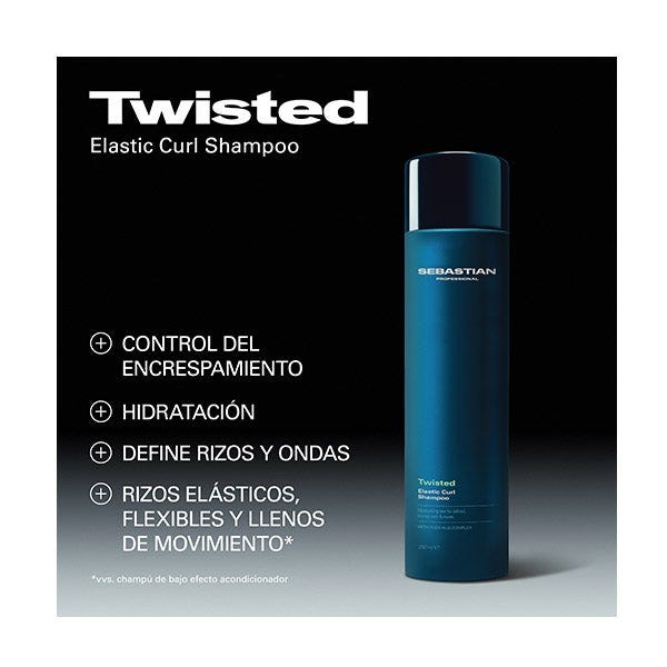El champú Twisted de Sebastian Professional cuida e hidrata el cabello rizado, a la vez que lo limpia con delicadeza, para proporcionar flexibilidad y definición a los rizos y ondas. Formulado con el Complejo FLEXI ALG™, controla el encrespamiento y consigue unos rizos más elásticos* y brillantes.
