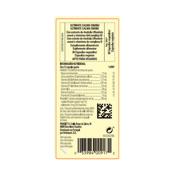 ULTIMATE CALMA DIARIA Con Extracto de Rhodiola (Rhodiola rosea) y Vitaminas del Complejo B.