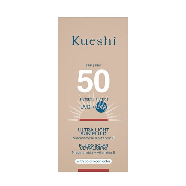 Fluido solar ultraligero con color, y con factor de protección 50 para una protección solar óptima.