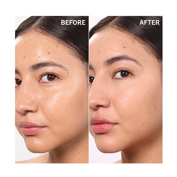 Usa un pincel o una esponja de maquillaje para aplicarlo en el rostro, enfocándote en el área debajo de los ojos, la zona T y en cualquier lugar que desees matificar.