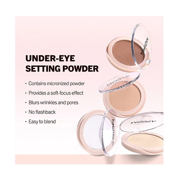 MOIRA Under-Eye Setting Powder es un polvo ligero y fácil de difuminar que fija el maquillaje bajo los ojos durante todo el día mientras aporta un acabado suave y luminoso. Esta fórmula no comedogénica es adecuada para todos los tonos de piel y ayuda a reducir líneas finas, arrugas y poros sin dejar efecto de flashback. Este polvo microfino, innovador y seguro para los ojos contiene escualeno vegano y aceite de caléndula, que ayudan a restaurar la elasticidad de la piel y proporcionan una textura suave y lisa.