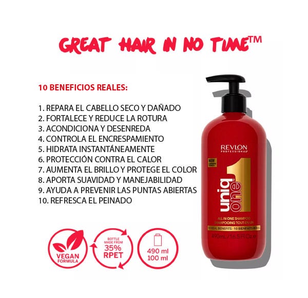 10 beneficios reales en un solo champú, con una nueva fórmula mejorada con resultados profesionales.
