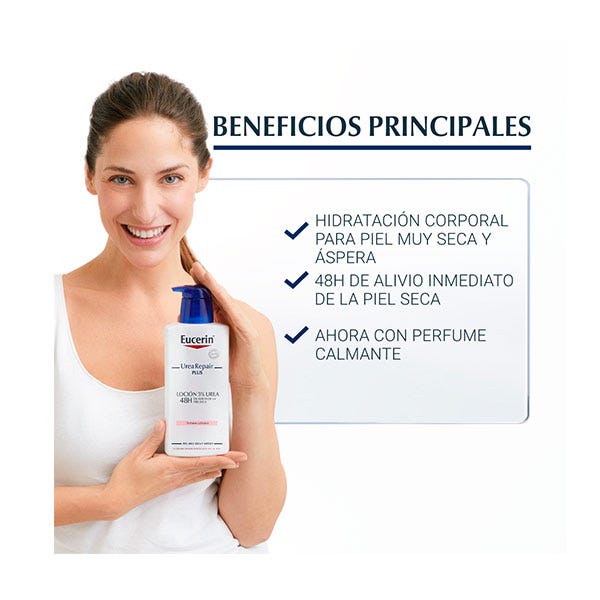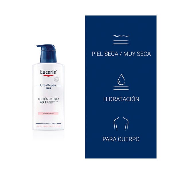 Eucerin Urea Repair Plus 5% Loción Corporal con Perfume es una loción hidratante intensiva que calma la piel áspera y seca y alivia de forma inmediata y duradera con un perfume calmante y delicado.