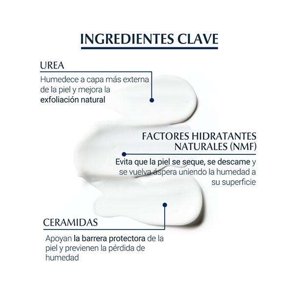 Esta crema corporal ha sido formulada con urea, que hidrata y mejora la exfoliación natural; factores naturales de hidratación, que evitan que la piel se seque o descame; y ceramidas, que protegen la barrera protectora de la piel. Esta combinación de activos suaviza la piel y la hacen resiliente a la sequedad, ayudando a mantener niveles óptimos de hidratación. Puede usarse en todo el cuerpo y es apto para personas con psoriasis o diabetes.