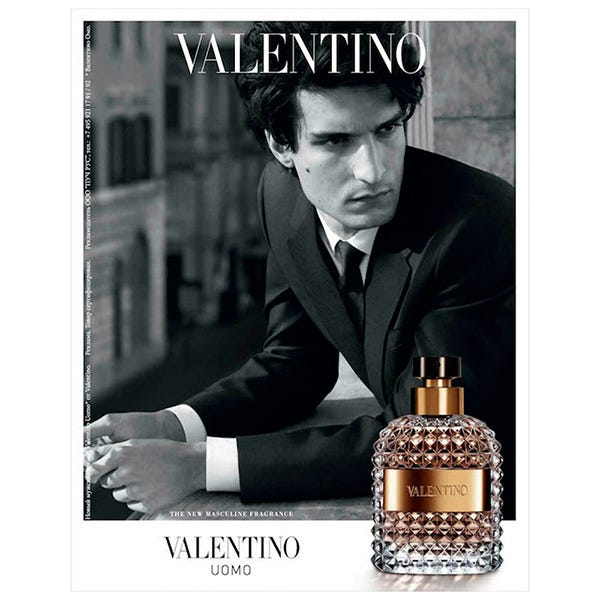 Valentino Uomo representa la elegancia romana y sus contrastes. Un guiño al estilo italiano clásico con matices sorprendentes.