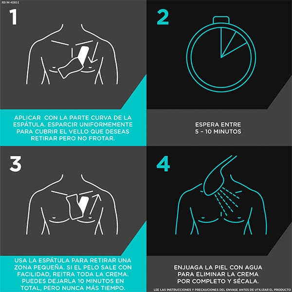 Si el vello se elimina con facilidad, retira el resto de la crema con la espátula. En caso necesario, deja actuar la crema un poco más sin exceder nunca un tiempo superior a 10 minutos.
