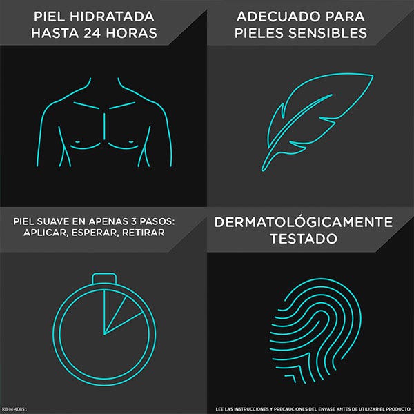La crema depilatoria en gel de Veet for Men elimina rápida y eficazmente el vello corporal sin dolor.