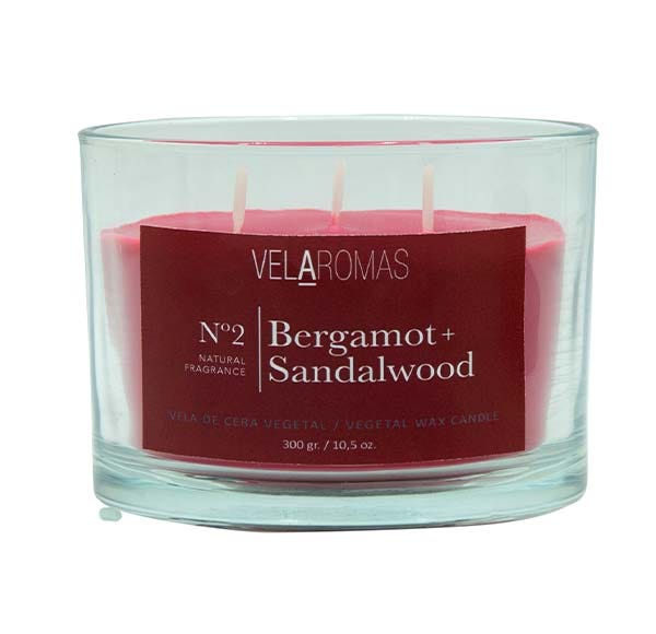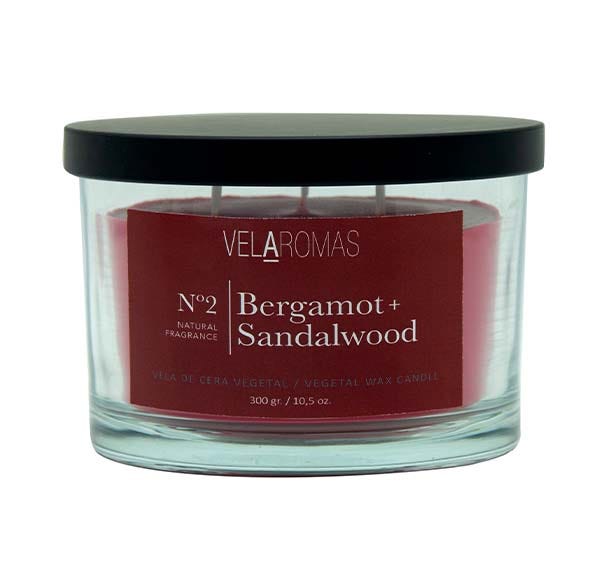 Vela 3 Mechas con tapa de cera vegetal con fragancia a BERGAMOTA SANDALWOOD