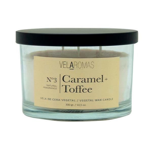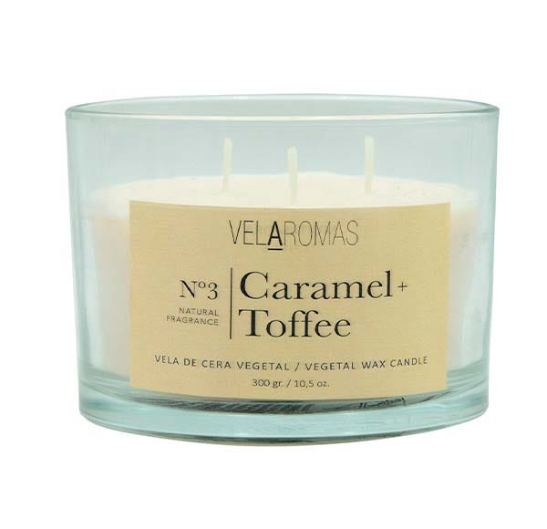 Vela 3 Mechas con tapa de cera vegetal con fragancia a CARAMEL TOFFE