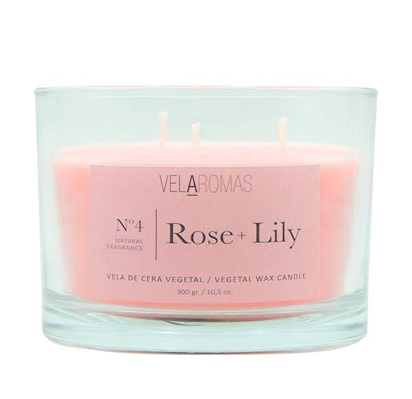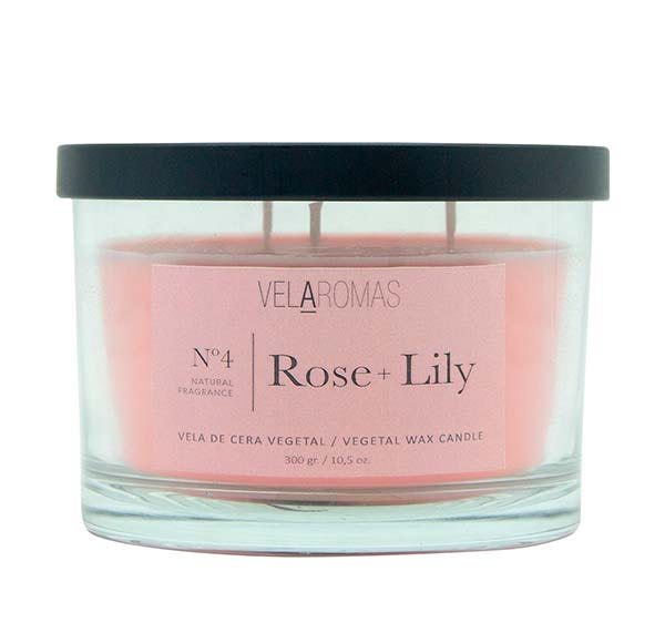 Vela 3 Mechas con tapa de cera vegetal con fragancia a ROSE & LILY