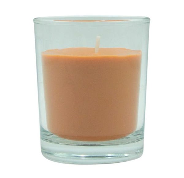 Vela de cera vegetal con fragancia a Canela. Presentada en vaso de cristal 100% reciclable.