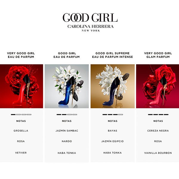 Llegan las nuevas Good Girls: fuertes, atrevidas y fabulosas. Good Girl vuelve a pisar fuerte, compartiendo ahora su poder con un nuevo conjunto de mujeres imparables. Todas las Good Girls de hoy en día expresan alguna faceta diferente de la fragancia: divertida y sutil, fuerte y femenina, alegre y misteriosa.