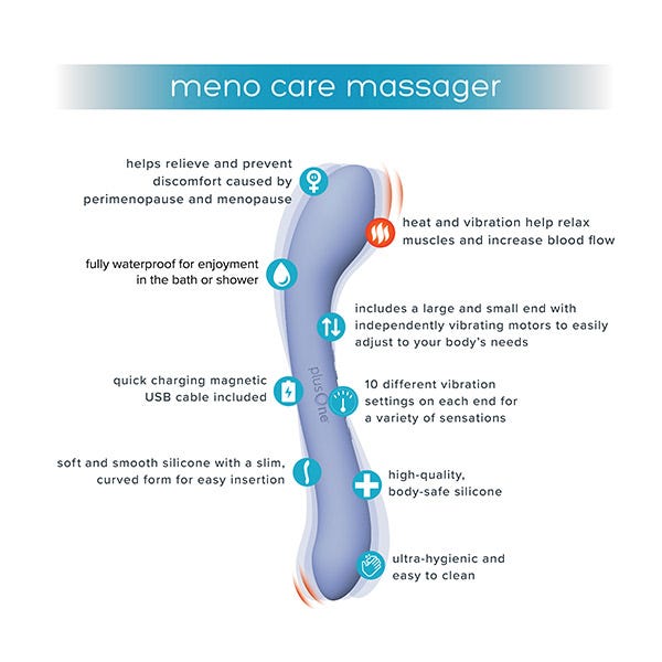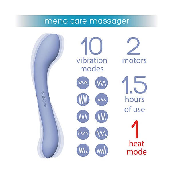 Acepta el cambio y pasa a la siguiente etapa de la vida con confianza y con un dispositivo diseñado con la colaboración de médicos. El masajeador para la menopausia plusOne® ofrece alivio de los síntomas de la perimenopausia y la menopausia. Este masajeador aprobado por obstetras y ginecólogos ayuda a relajar los músculos y a aumentar el flujo sanguíneo con un motor doble, 10 configuraciones de vibración personalizables y un modo de calentamiento. Ofrece un suave apoyo para la menopausia con una forma delgada y curva para insertarlo fácilmente y brindar comodidad. Tiene dos extremos con dos tamaños de inserción y motores independientes en cada lado para adaptarse a las necesidades de tu cuerpo en cada etapa. Mereces sentirte empoderada durante este período de transición.