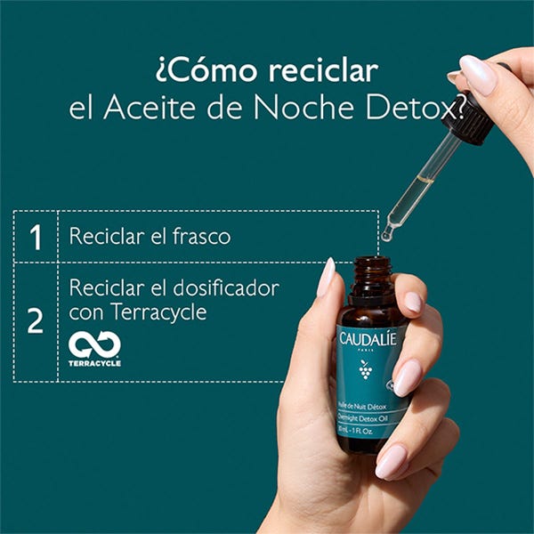 Aplícate 6 gotas de tu Aceite de Noche Detox por la noche, solo o antes de tu crema hidratante. Evita el contorno del ojo.