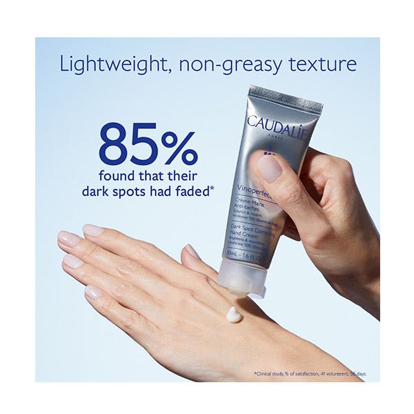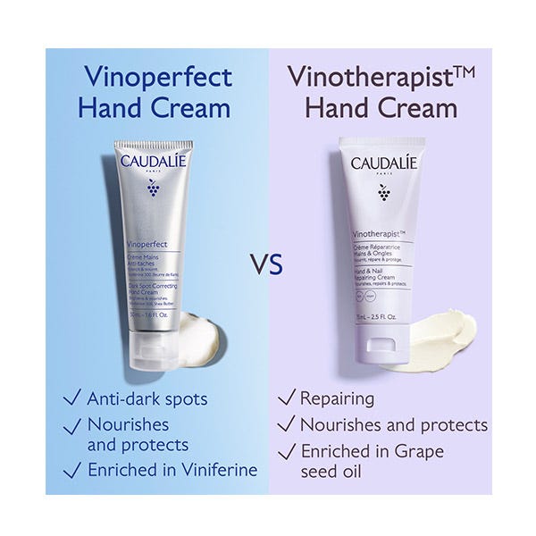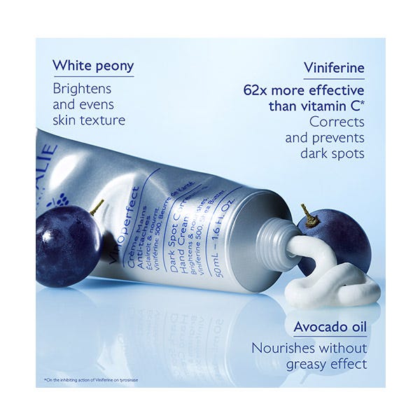 Creada específicamente para las manos, la Crema Antimanchas para Manos Vinoperfect difumina visiblemente las manchas oscuras, previene su aparición y nutre las manos sin dejar un acabado graso.