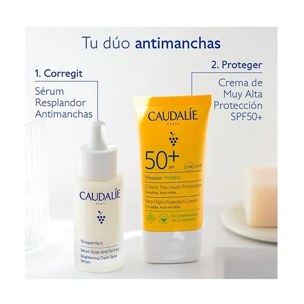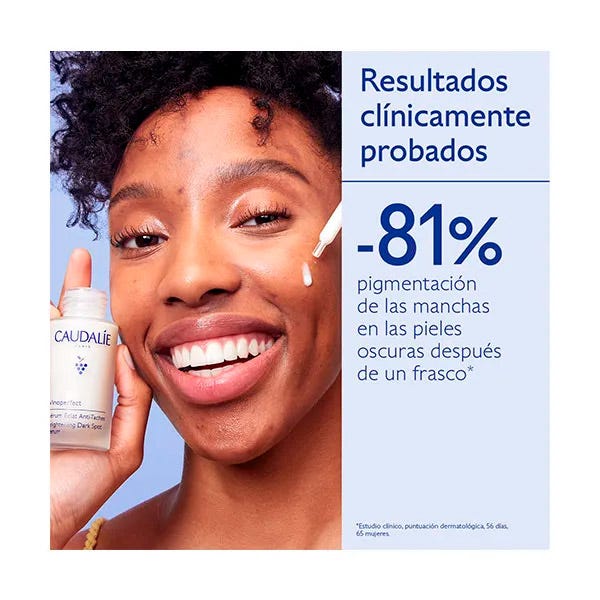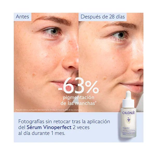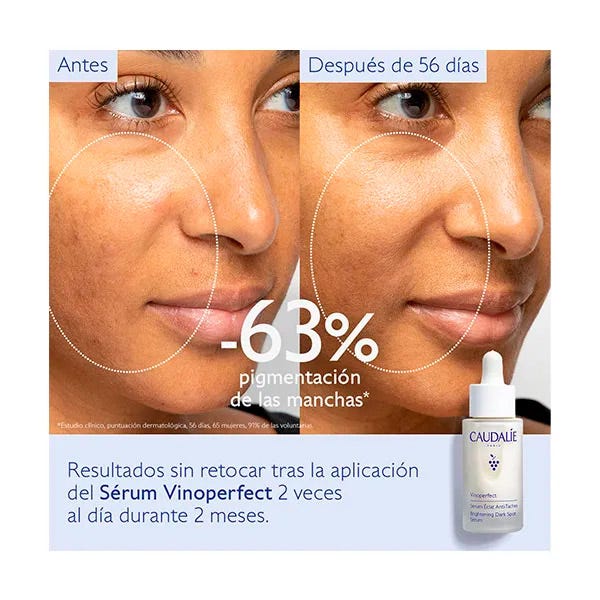 El Sérum Resplandor Antimanchas Vinoperfect, el antimanchas N°1 en farmacias en España (1), previene y corrige todo tipo de manchas, en todos los tipos de piel.