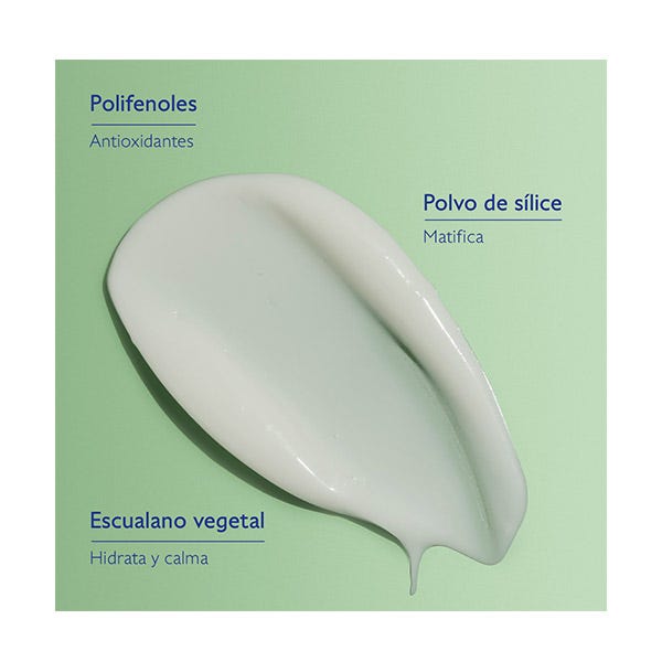 Un fluido refrescante con una acción hidratante de larga duración y una acción anti-brillos.